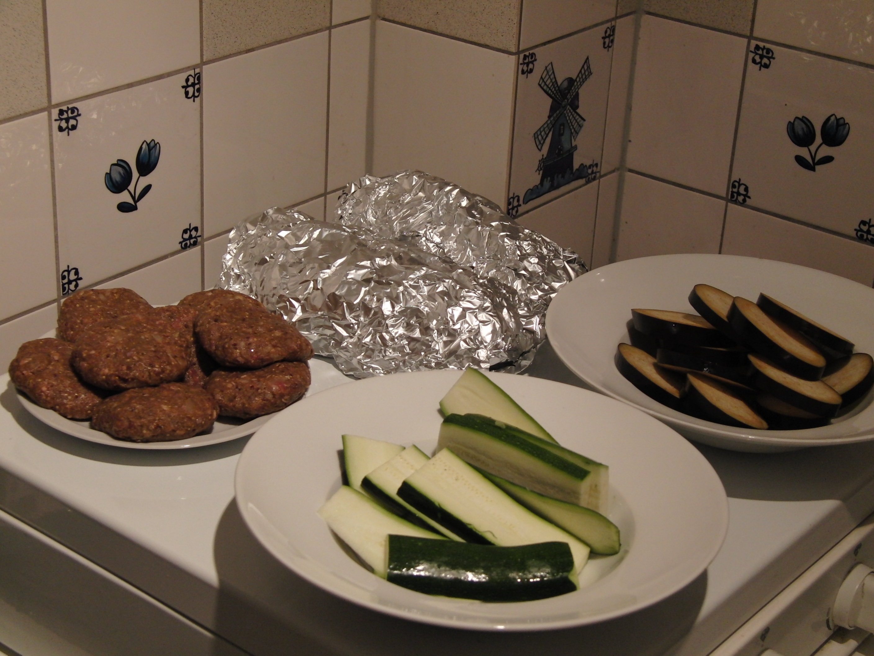 Hamburgers, courgette, aubergine en aardappelpakketjes 15 februari 2013 2816 × 2112 Friday Night Family bbq